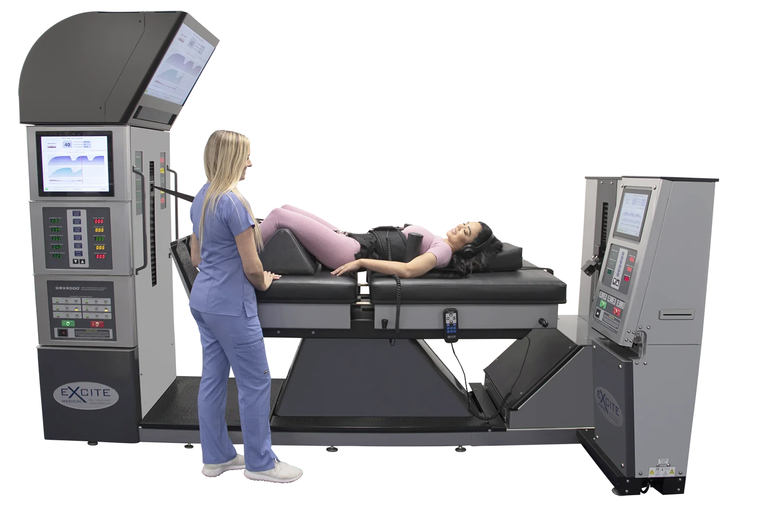 It was created to assist healthcare providers in their effort to treat lower (lumbar) back pain and has evolved in recent years to treat the cervical spine (neck). The Non-Surgical Spinal Decompression provides a primary treatment modality for patients suffering with low back pain, neck pain, and sciatica. This device is designed to provide pain relief for compressive and degenerative injuries of the spine. Through the application of spinal decompressive forces to these injuries, the Non-Surgical Spinal Decompression gives patients relief from back or neck pain and allows them to resume the activities they love.